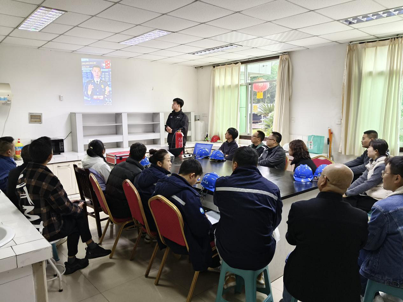 为深入贯彻落实2025年第34个“全国消防宣传月”主题活动精神,11月10日上午,大英公司在太吉水厂组织开展了消防应急知识现场实操安全教育培训。本次培训特邀遂宁消安消防安全技术服务中心严教官担任主讲,采取“讲解+演示”相结合的方式现场授课。公司党支部组织委员、副总经理王洪先,以及各部门相关人员共二十余人参加。