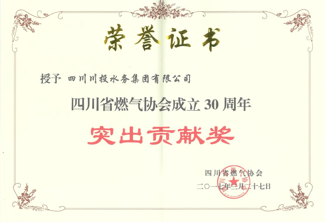 四川省燃气协会成立30周年突出贡献奖