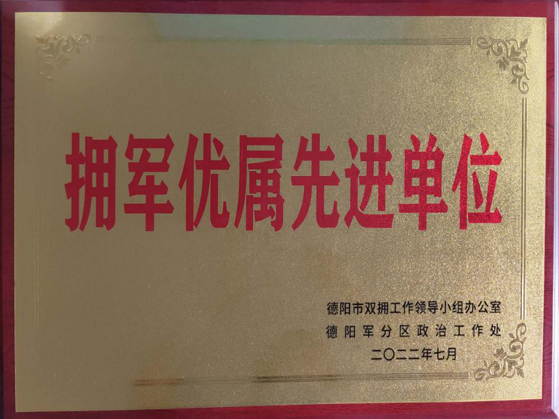德阳市双拥工作领导小组办公室、德阳军分区政治工作处授予中江公司2022年度“拥军优属先进单位”荣誉称号