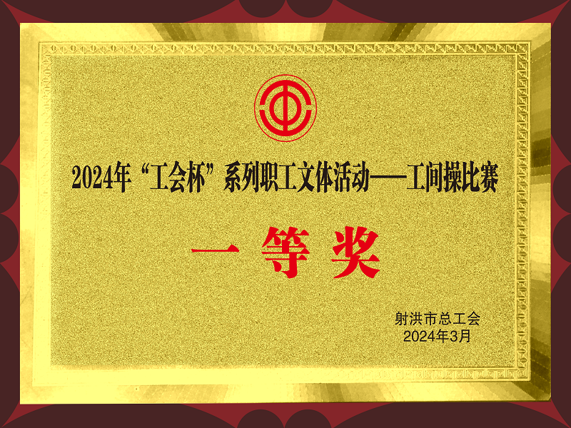 射洪市总工会授予射洪公司2024年度“工会杯”系列职工文体活动—工间操比赛一等奖
