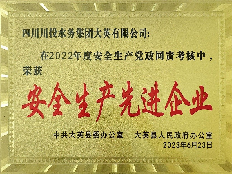中共大英县委办公室、大英县人民政府办公室授予大英公司2022年度“安全生产工作先进企业”荣誉称号