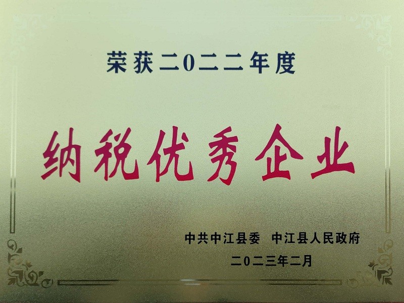 中共中江县委、中江县人民政府授予中江公司“2022纳税优秀企业“荣誉称号